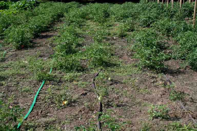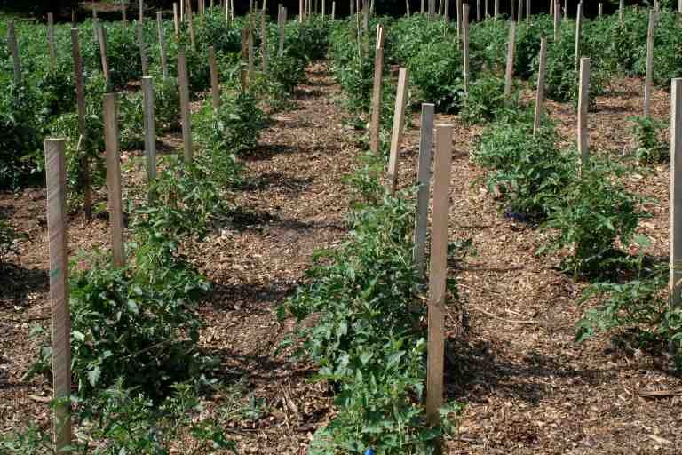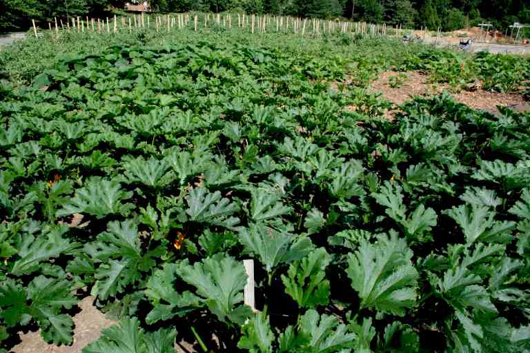 The Lewis Ginter Community Kitchen Garden has scale – significant scale. The following image shows the eastern edge of the garden currently populated with Black Beauty zucchini and tomatoes – rows & rows of tomatoes (20 plants per row).
