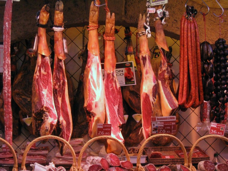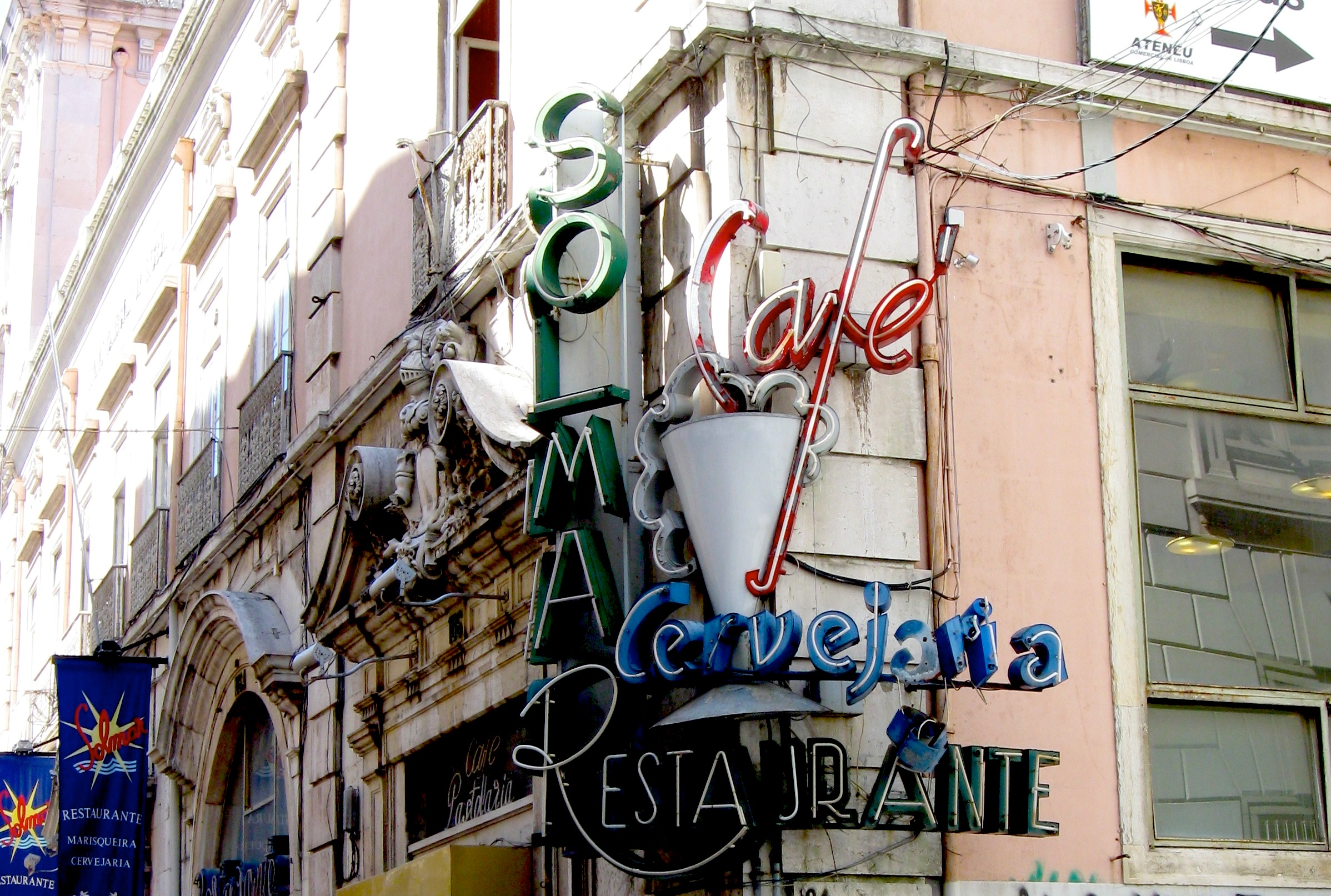 Madrid Club Boco del Lobo, a rock club. How will the wolf survive? (Los Lobos) Very well, by the appearance of this beautifully carved wooden sign.Rua das Portas. I love the design of this neon cafe sign, and it's even cooler in contrast with the historic architecture of the building.Peguera - an old beach resort on the southwest part of the island of Majorca (Mallorca). How old is this street/wall? I'm guessing it could date back to the time of the Moors (711 - 1492).Another eclectic mix of signage, including the contrast between the pseudo-medieval cobbler's symbol and the contemporary urban "tag". Casa Forra ( Baixa district - Lisbon) may not look like much on the outside, but inside you'll find every kind of shoe & luggage accessory. Take a number & wait - it's busy.Trolley making its rounds on Rua Garrettt in the Chiado district of Lisbon.Cervejaria de Trindade. The oldest beer hall (cerveja = cerveza) in Lisbon, now a brewery and fine seafood restaurant. Originally the site of the largest and most important monastery in Portugal, founded in 1294. (1294!) Some of the Azulejos tiles used in the construction of the brewery were salvaged from the ruins of the monastery.The Portugese are masters of the sea indeed. Window display of a restaurant on Rua de Augusta in Lisbon. Letting it all hang out. Serrano ham and other meats displayed in La Boqueria, Barcelona's huge indoor market.Rua de Noticias in Lisbon's Barrio Alto district. On one of my own European trips I noticed a stark contrast beween France & Italy. The instant you cross the border from France into Italy you see laundry hanging out of the windows. Maybe it's a shortage of automatic dryers, but I bet France has a rule against hanging laundry out.
