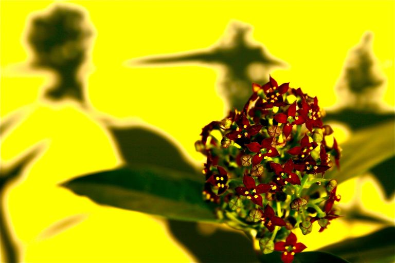 “Junior” – because this is just a small rooted cutting from a green Aucuba plant. “Goodie” – because, well, you be the judge. Maybe because this plant is diminutive the flowers are so conspicuous. Aucuba Japonica probably is listed as having “inconspicuous” flowers in the spring, but striking red berries in winter. Here in central Virginia Aucuba plants of all varieties are usually very large, almost hedge-like in mass plantings. I’m betting it’s rare that owners get close enough to appreciate the delicate and intricate bracts.