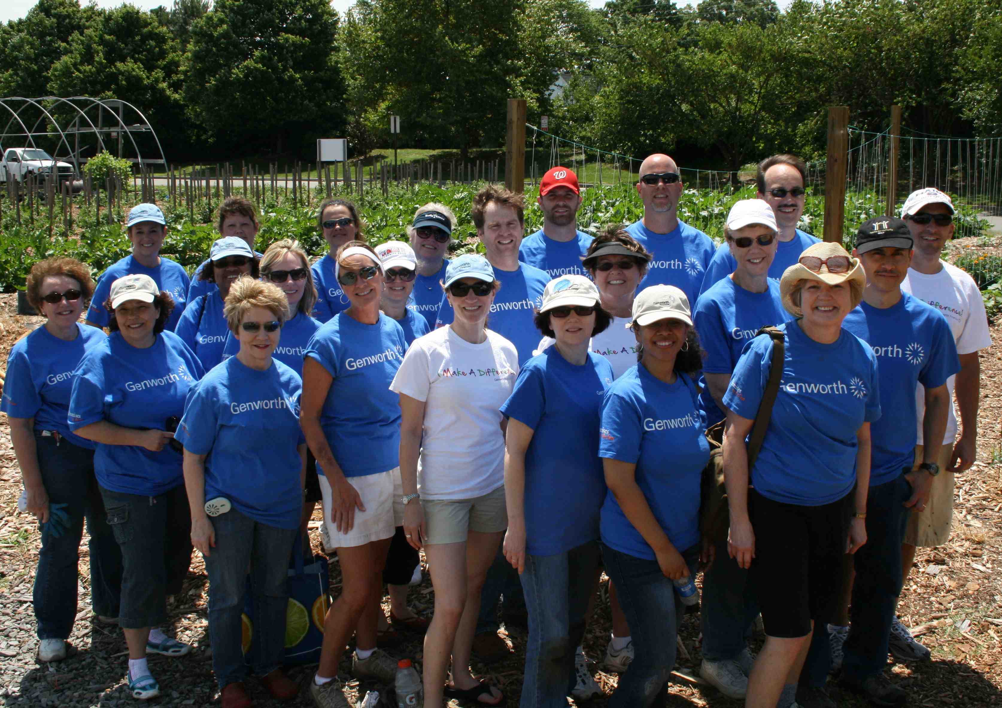 More than 30 Genworth associates came to work in the Lewis Ginter Community Kitchen Garden on June 13. That huge number of volunteers puts Genworth in first place so far this season in terms of the number of corporate associates who have visited on one occasion to contribute volunteer labor to the Community Kitchen Garden. Altria still holds the lead for total number of associates – and total hours – laboring in the garden year-to-date: 37 associates; 137 hours. Dominion Power is currently running third and has two other work sessions scheduled, and Bank of America is getting ready to take up the challenge.