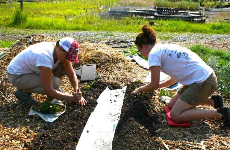 The primary way of starting a new crop is to plant rooted shoots from established tubers. These shoots are known as “slips”. The slips were provided by Clifton Slade from his organic farm in Surry, VA. Cliff donated two varieties: Beauregard – with a traditional orange flesh, and O’Henry – a white/cream sweet potato.