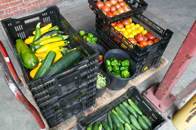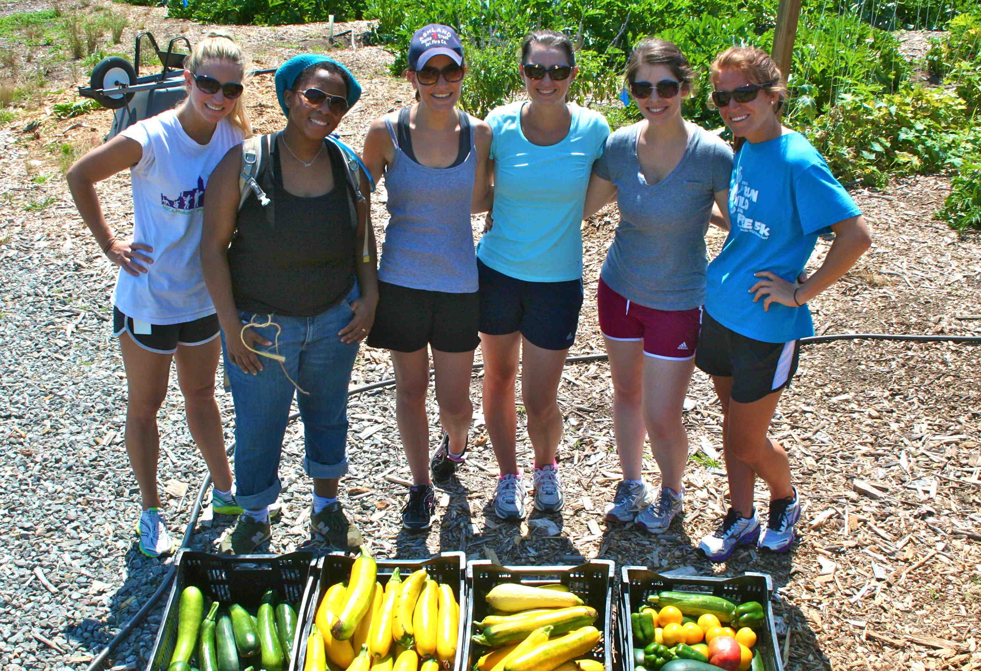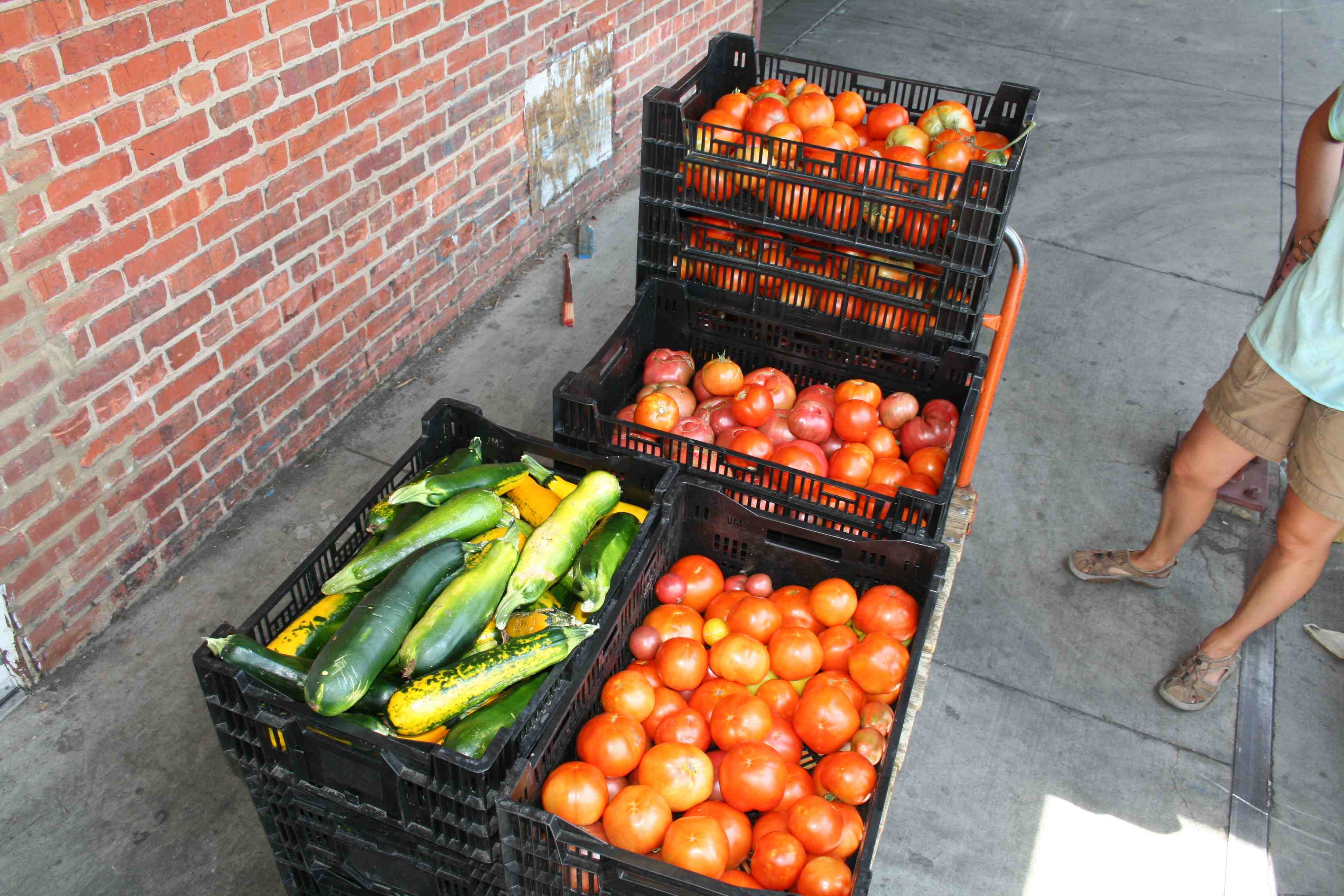 The summer harvest season has definitely been in full swing here in the Lewis Ginter Community Kitchen Garden, and we’re still swinging for the fences. The photos below illustrate a natural progression, with our harvest weighted toward squash/zucchini in June and then swinging toward a heavy – and that’s a literal meaning of the word “heavy” – weighting toward tomatoes as the summer progresses. We made a secondary planting of squash in early July (Yellow Crookneck & Patty Pan) to provide a continuation of the squash harvest (if we can survive the vine borers). The current 2012 total yield from the garden is 5,223 lbs., the result of more than 700 hours of volunteer labor year-to-date. Just wait ’til you see the next post from the August 4 work session.