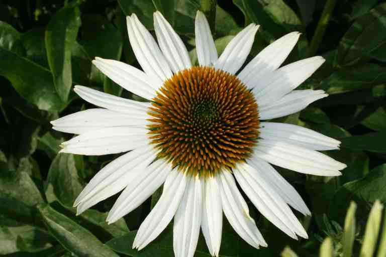 We’ve thoroughly enjoyed our ad hoc trials with companion plants here in the 2012 Lewis Ginter Community Kitchen Garden. Although we’re not yet capable of quantifying the companion plant benefits within our integrated pest management strategy, the anecdotal experience has been very positive. We’ve grown numerous herbaceous plants specifically to attract beneficial insects, and hopefully to deter a few pests. The list is long, and will likely be much longer in 2013. The beauty – and fragrance – of these plants has been rewarding: basil, parsley, chives, dill, tansy, marigolds, salvia, artemisia, eucalyptus, zinnia, nasturtium, and the current star: Echinacea purpurea (coneflower). A North American native and member of the Aster family, Echinacea purpurea is commonly a purple/pink flower – but we’ve also grown some with white flowers. The drug Echinacea – purported to boost the human immune system – is derived from this genus. The clinical evidence proving medical benefits is conflicting, but we do know coneflowers attract butterflies and bees.