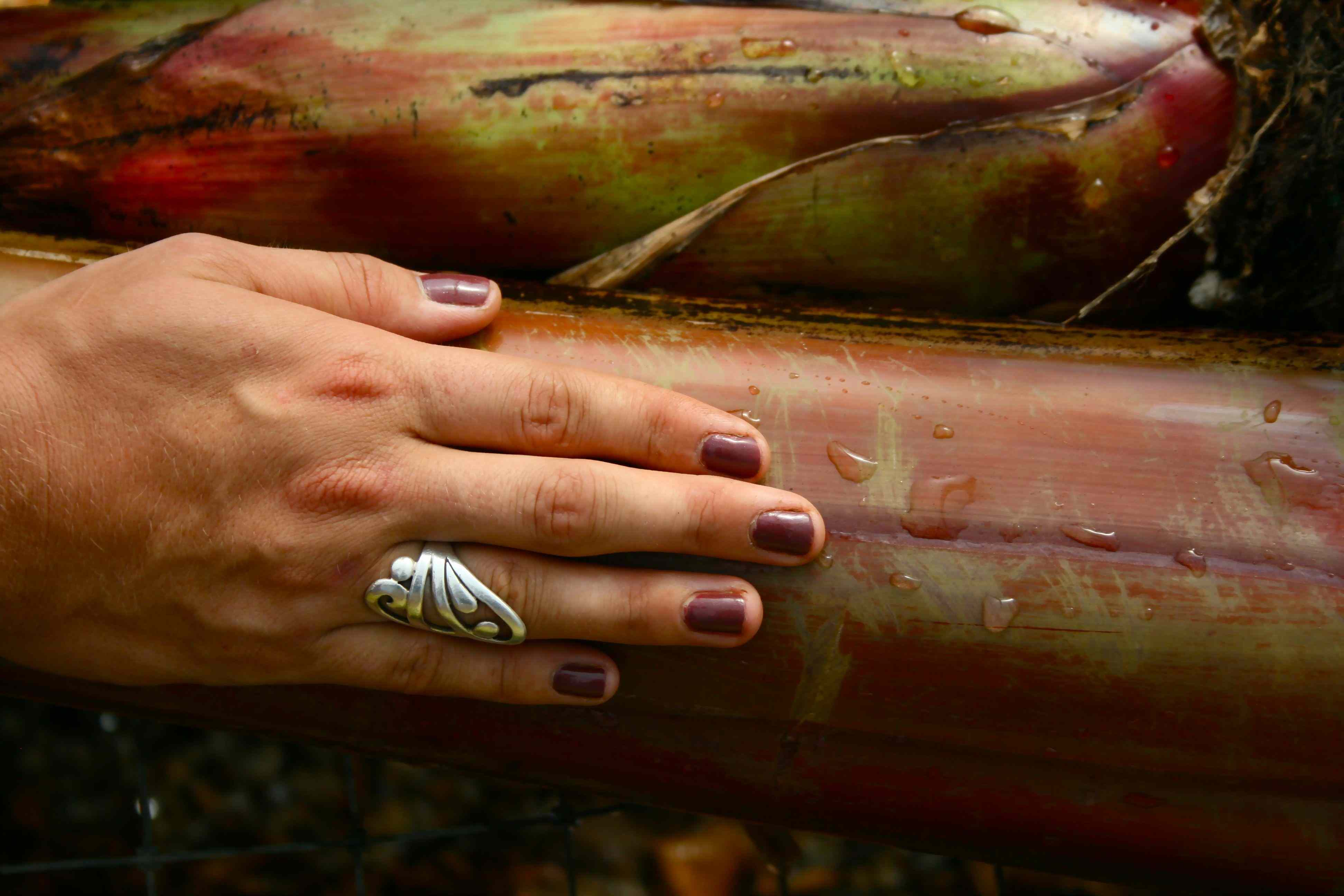 In Central Virginia it’s time to bring the banana “palms” in. The trunk layers have an amazing blend of translucent colors as the plants are dry-rooted to prepare the corms for winter storage.