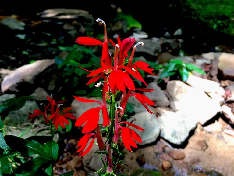 Cardinal flower (lobelia cardinalis). Nice to see a native thriving. Deep Run Park, Henrico, VA.