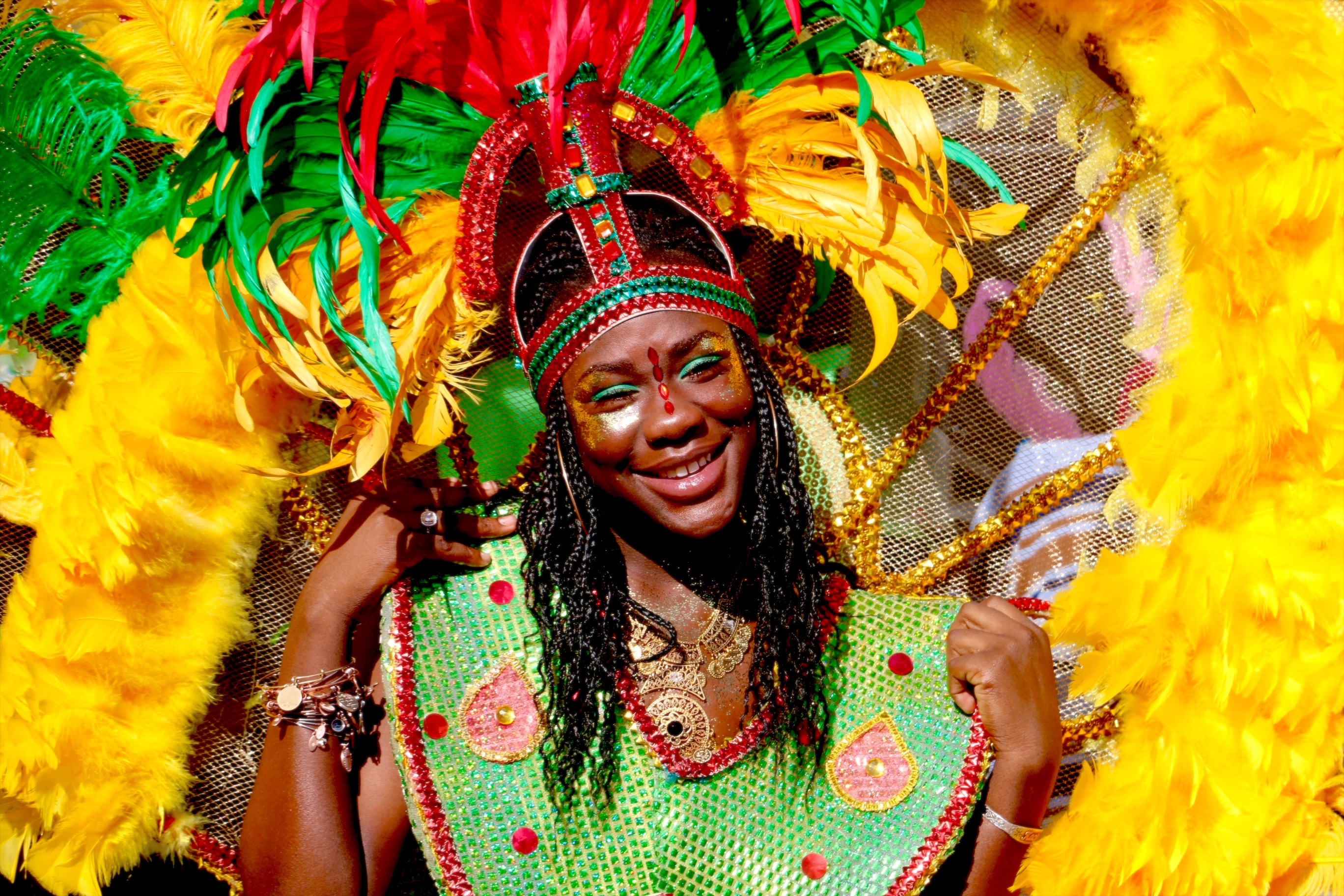 The 2018 Richmond Folk Festival Virginia Folklife Area’s theme – Masquerade – featured various costuming and adornment traditions in Virginia, including Carnival costumes of the mid-Atlantic’s Caribbean community. Carnival costume maker Kenley “Shortmus” John is from the island of St. Vincent in the Caribbean Sea. After moving to Baltimore, he founded Shortmus Productions, a performing arts group that constructs costumes each year for Caribbean-style carnival celebrations across the country, including the annual CaribeFest in Virginia Beach.