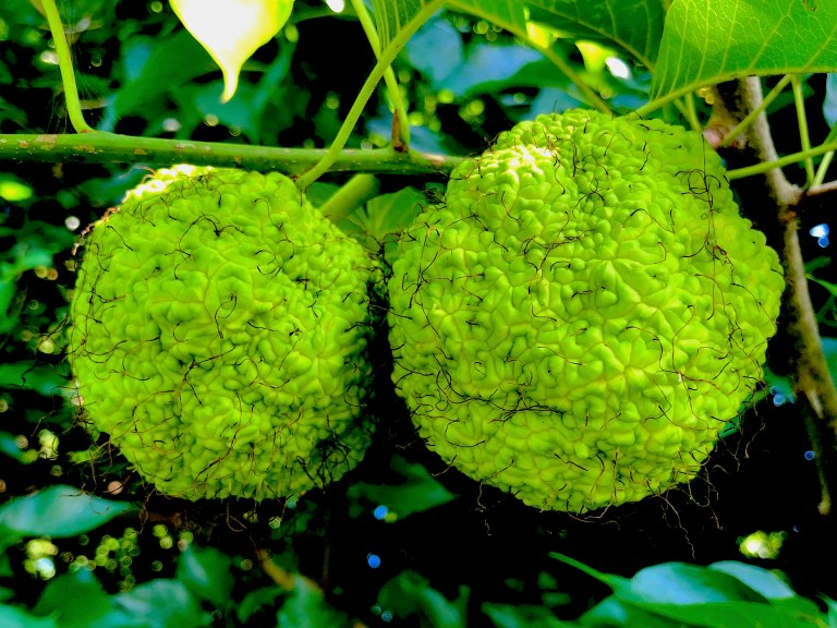 July 28, 2020 Monkey Balls Hairy Maclura pomifera Fruit No kidding, that’s one of the nicknames for Maclura pomifera fruit, even in polite company. We generally know it as Osage Orange. Other nicknames include hedge apple, horse apple or monkey brains. Share this: Click to email a link to a friend (Opens in new window) Email Click to share on Facebook (Opens in new window) Facebook Click to share on LinkedIn (Opens in new window) LinkedIn Like Loading... Related