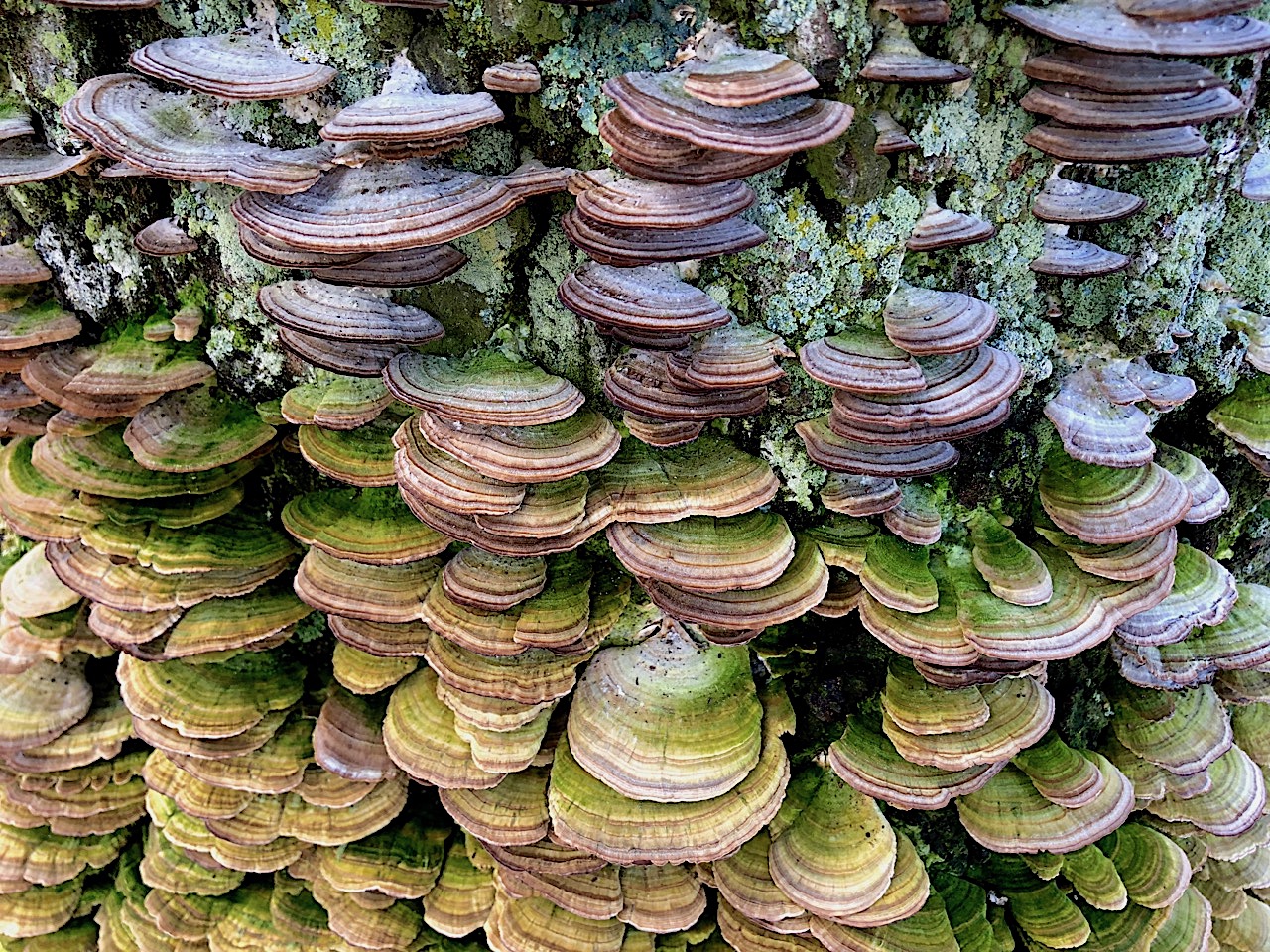 Another example is Stereum hirsutum, the scientific name for one of the Turkey Tail mushroom lookalikes. The amusing fact here is that one of the key traits in differentiating Stereum hirsutum from the true Turkey Tail (Trametes versicolor) is the underside of Stereum hirsutum is smooth, not porous like Trametes versicolor or gilled like some other bracket mushrooms, and definitely not hairy, shaggy, wooly or fuzzy.