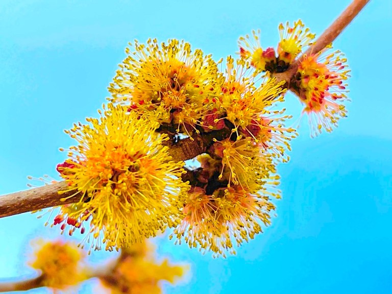 At the beginning of Spring everyone wigs out, justifiably so, on the Prunus genus (ornamental cherries & plums, etc.). But don’t overlook the Acer (maple) genus. It has a wonderful status by being among the first plants in the landscape to break dormancy in spring. The blooms have been referred to as insignificant, but not when the human eye is desperately searching for any color to break the monochrome of winter. Acer rubrum (various species of red maple), in particular, begins to transform parts of the winter treeline from brown to magenta.