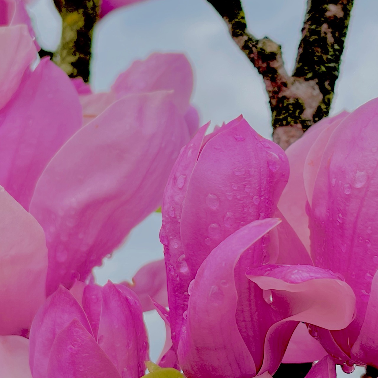 That being said, these are blooms from a Saucer Magnolia (Magnolia x soulangeana – a hybrid of Asian magnolia species), sometimes referred to as a Tulip Magnolia, and sometimes mistakenly referred to as Tulip Tree. Tulip Tree (Liriodendron tulipifera) is actually a Tulip Poplar (the eastern U.S. native tall tree with the yellow/orange blooms). For further obfuscation, Tulip Poplars are not really poplars, but are in the Magnolia family. Once again, a head-spinning, argument-creating circular trip through Scientific Classification.