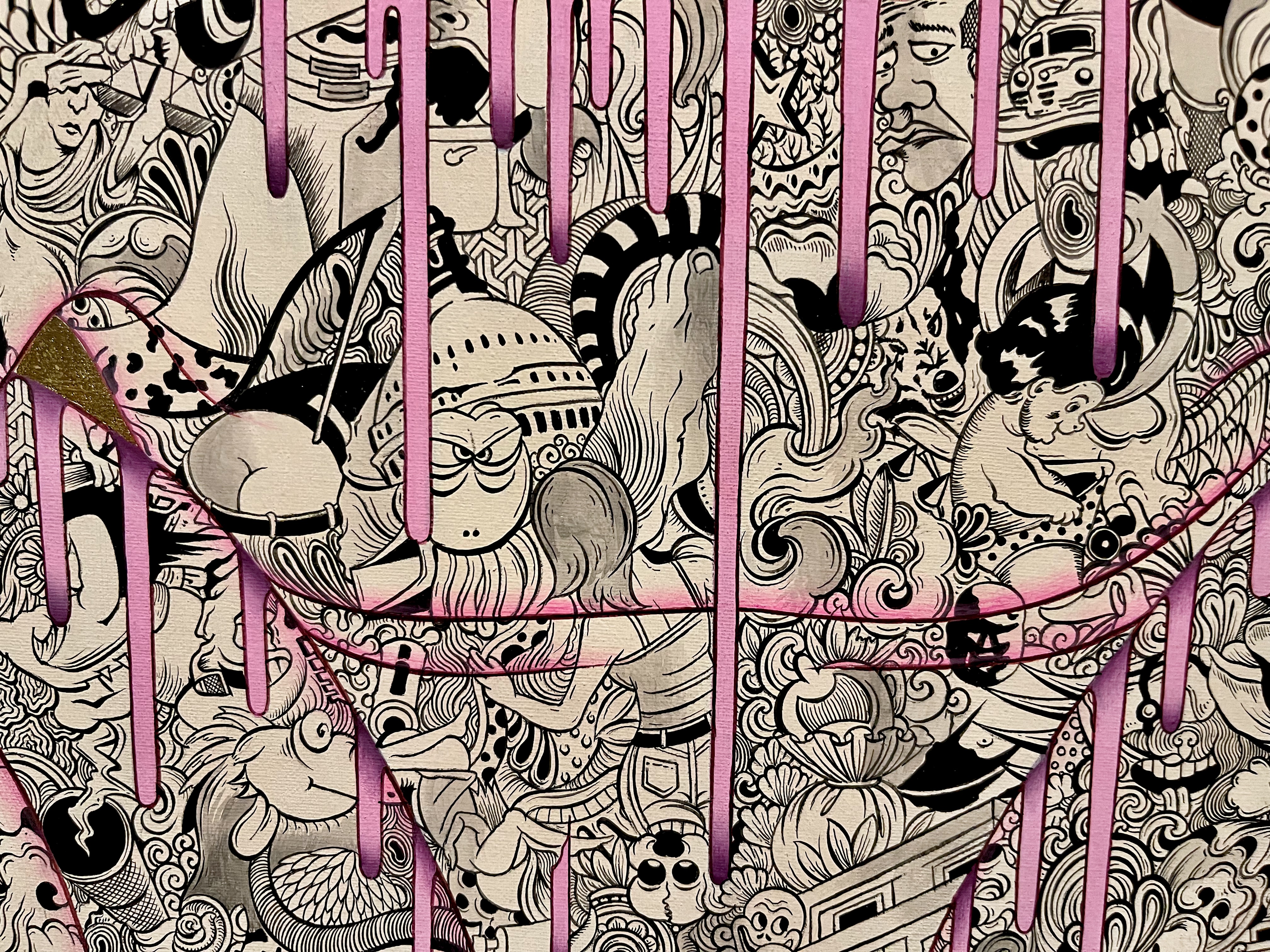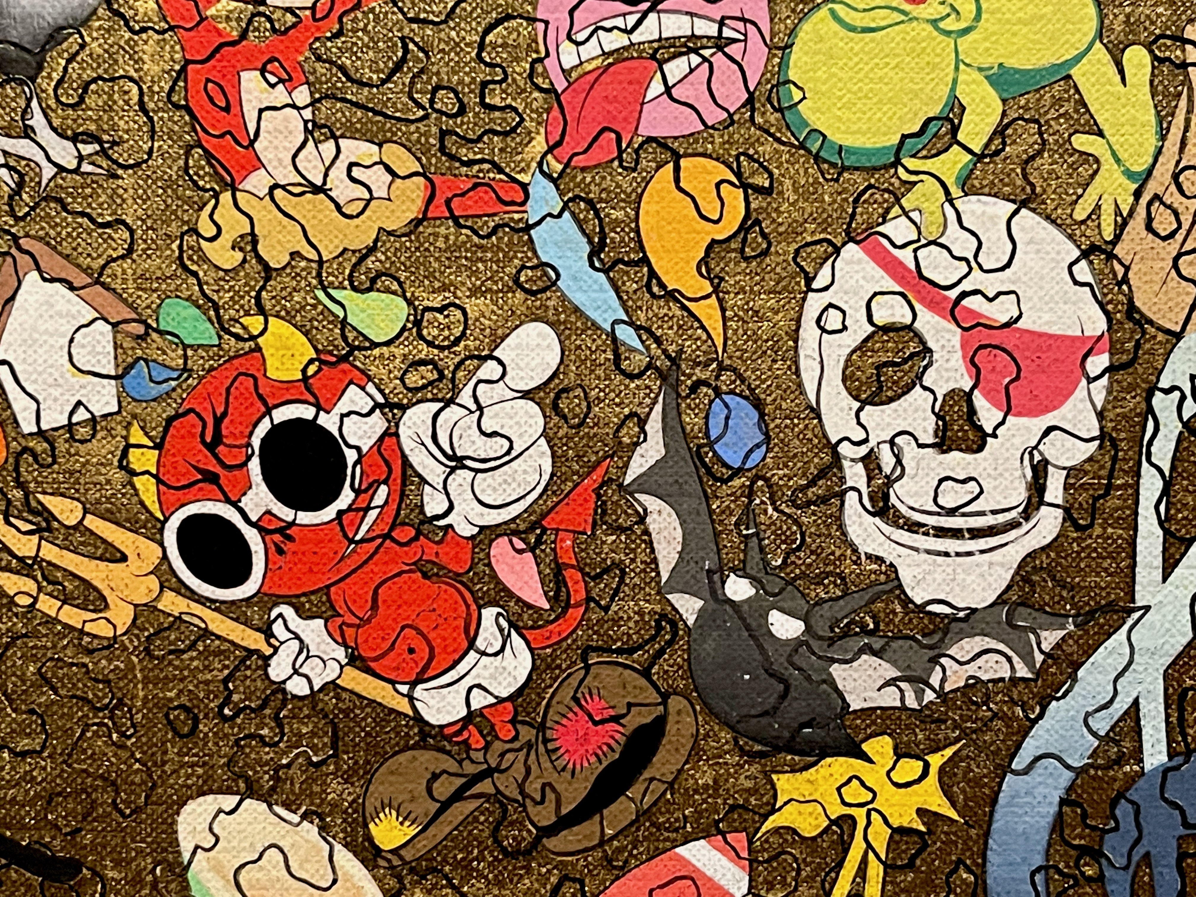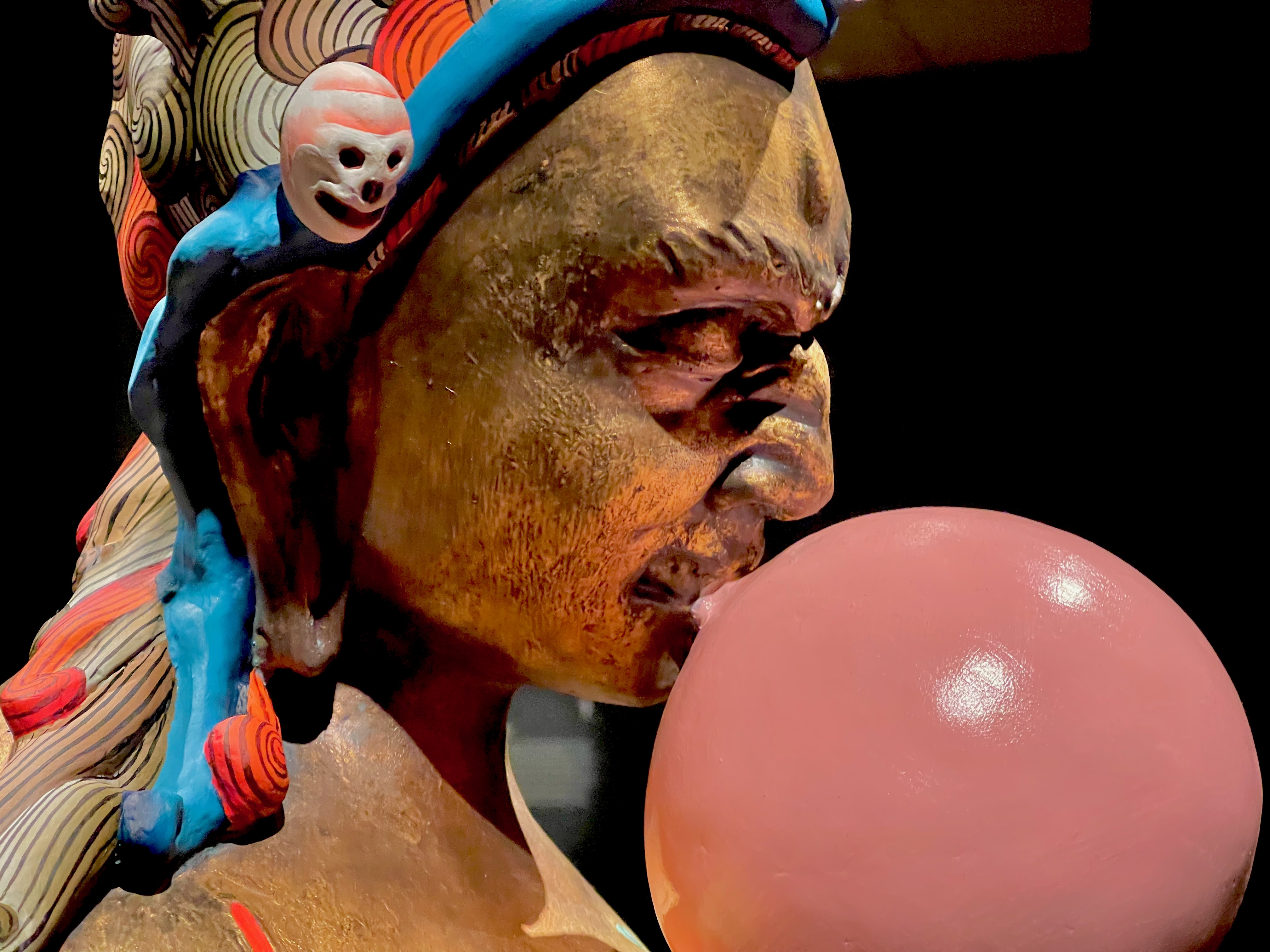 Here are a few details from works by Nepalese-born Tibetan American artist Tserin Sherpa (Tserin Sherpa: Spirits) currently on display at the Virginia Museum of Fine Arts. Sherpa incorporates elements of Western pop culture with traditional Tibetan spiritual art. The complex works are loaded with minute details, and these photographic enlargements allow us to see… well… see “more”. Paradoxically, it’s sometimes difficult for visitors to get close enough to the works to enjoy the small details. For example, during one visit at a different exhibition an overzealous young guard chastised a visitor who attempted to point out a painting’s detail – because the visitors’ hand (a la “Wild Pointy Finger” by Hayes Carll) crossed the viewing line.