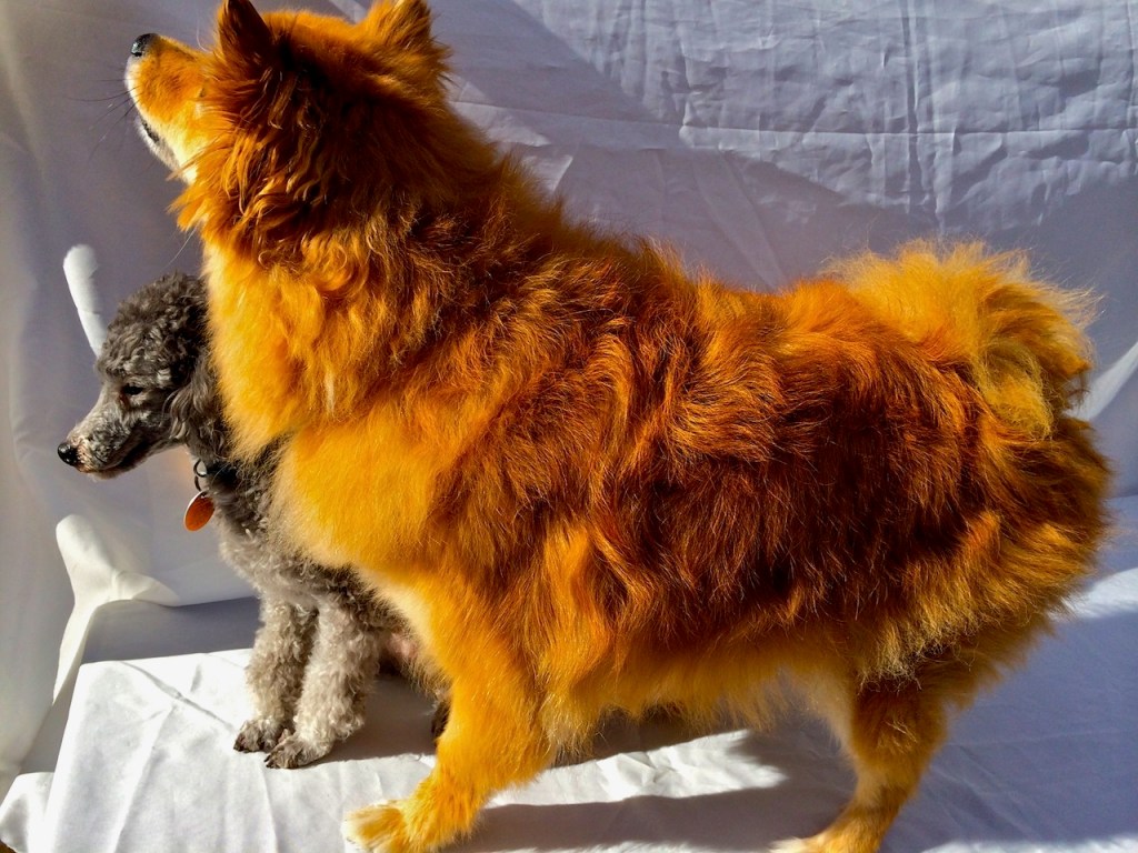 Pancho had a good life. He reached age 14 (Pomeranian lifespan: 12-15 yrs.) If you go by the old maxim “one year for a dog is equal to seven for a human” he was 98! He was exceptionally healthy most of his life, exceptionally active and an absolute circus dog. He loved (or at least was super-tolerant of) being held high in the air in a reclining position on his back, and being spun in circles. Another attribute: although his shedding of that luxurious coat was definitely hard on the vacuum, he never smelled like a dog (except for the doggie breath of course). Time marches on, and his health rapidly declined these final two years. He went totally blind, partially deaf and kidney disease had begun to sap his strength. Despite everything, he never complained, and never cursed his plight. He was just a good dog. The blindness was a remarkable challenge. A rationalizing human would think life would not be worth living for a blind dog, but Pancho was completely undeterred, surging forth on walks in the park, and even continued to be excited about car rides until the final few weeks.