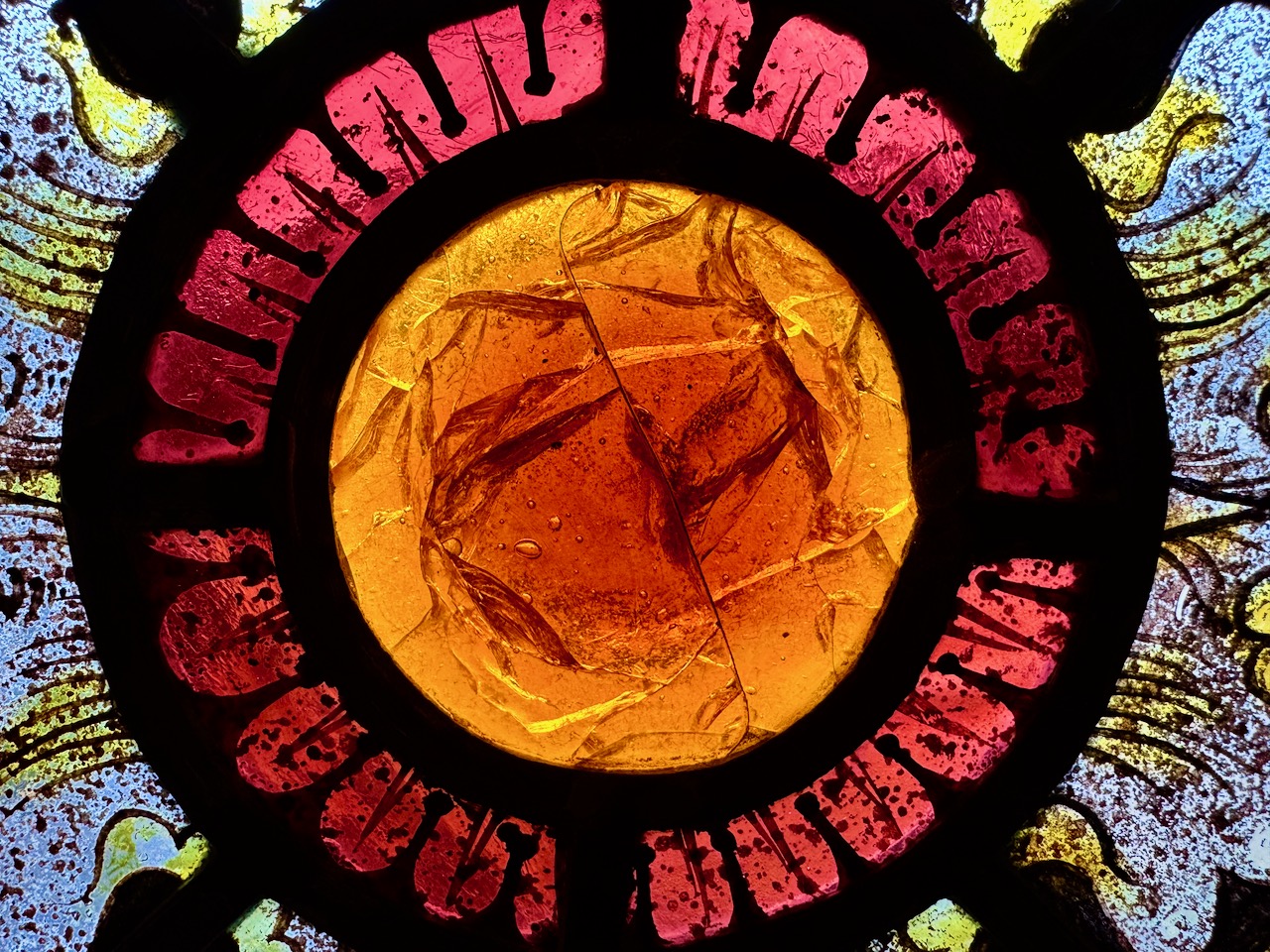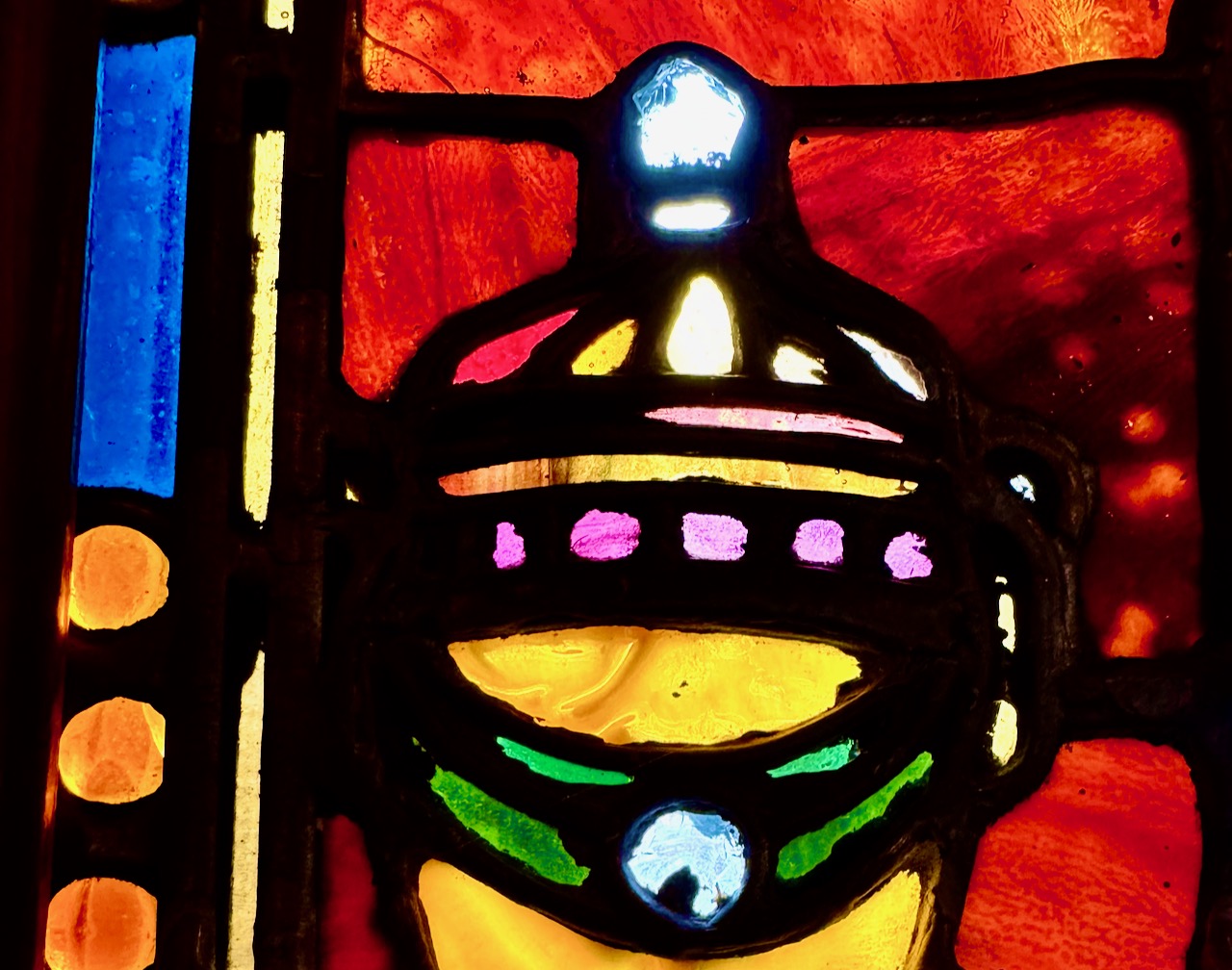 Stained glass details from windows at the Chapel of the Centurion – Fort Monroe National Monument. The chapel was constructed in 1857. It was the oldest continually used wooden military structure for religious services in the U.S. until decommissioned in 2011, and is still in use by the public.