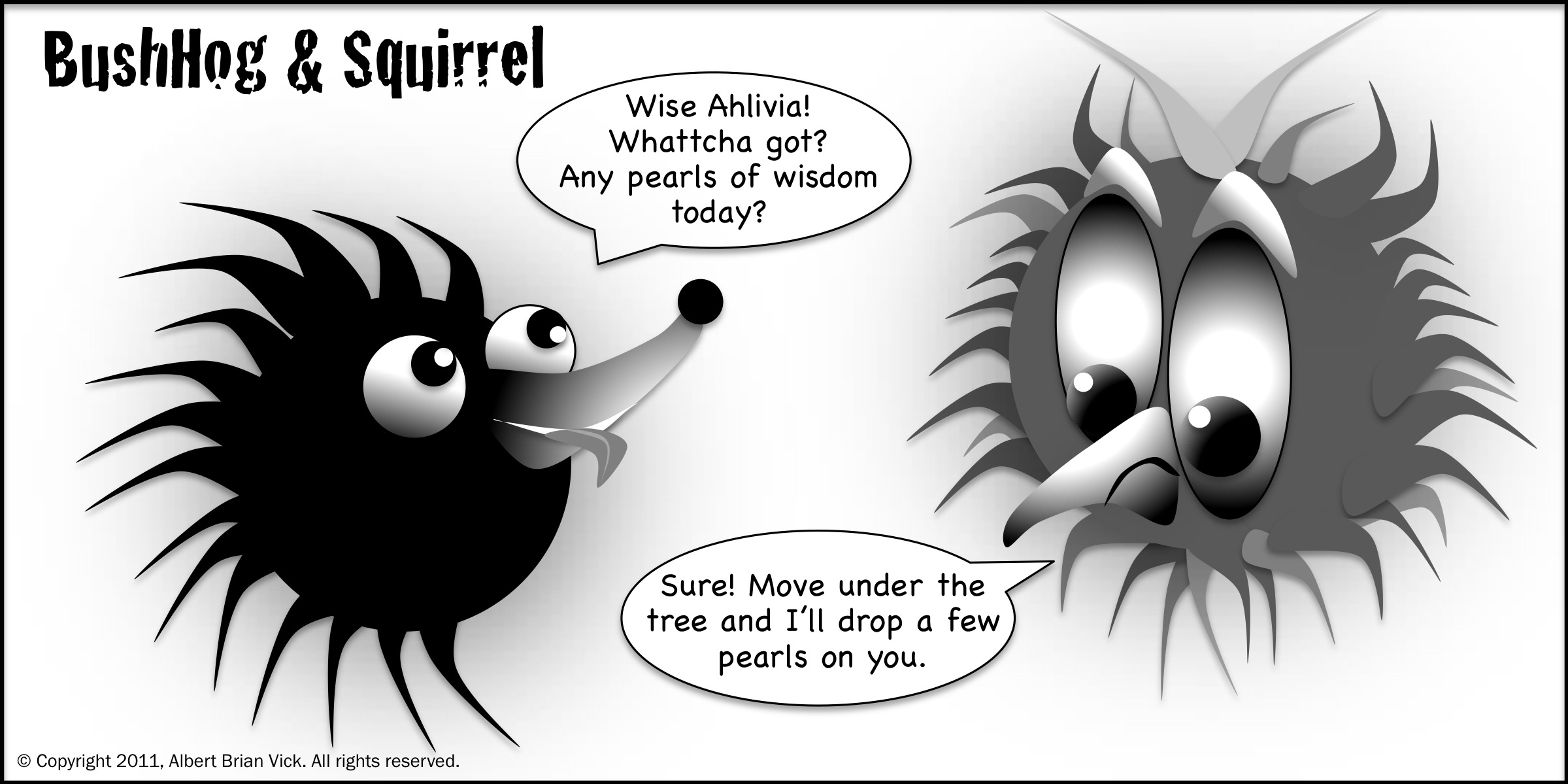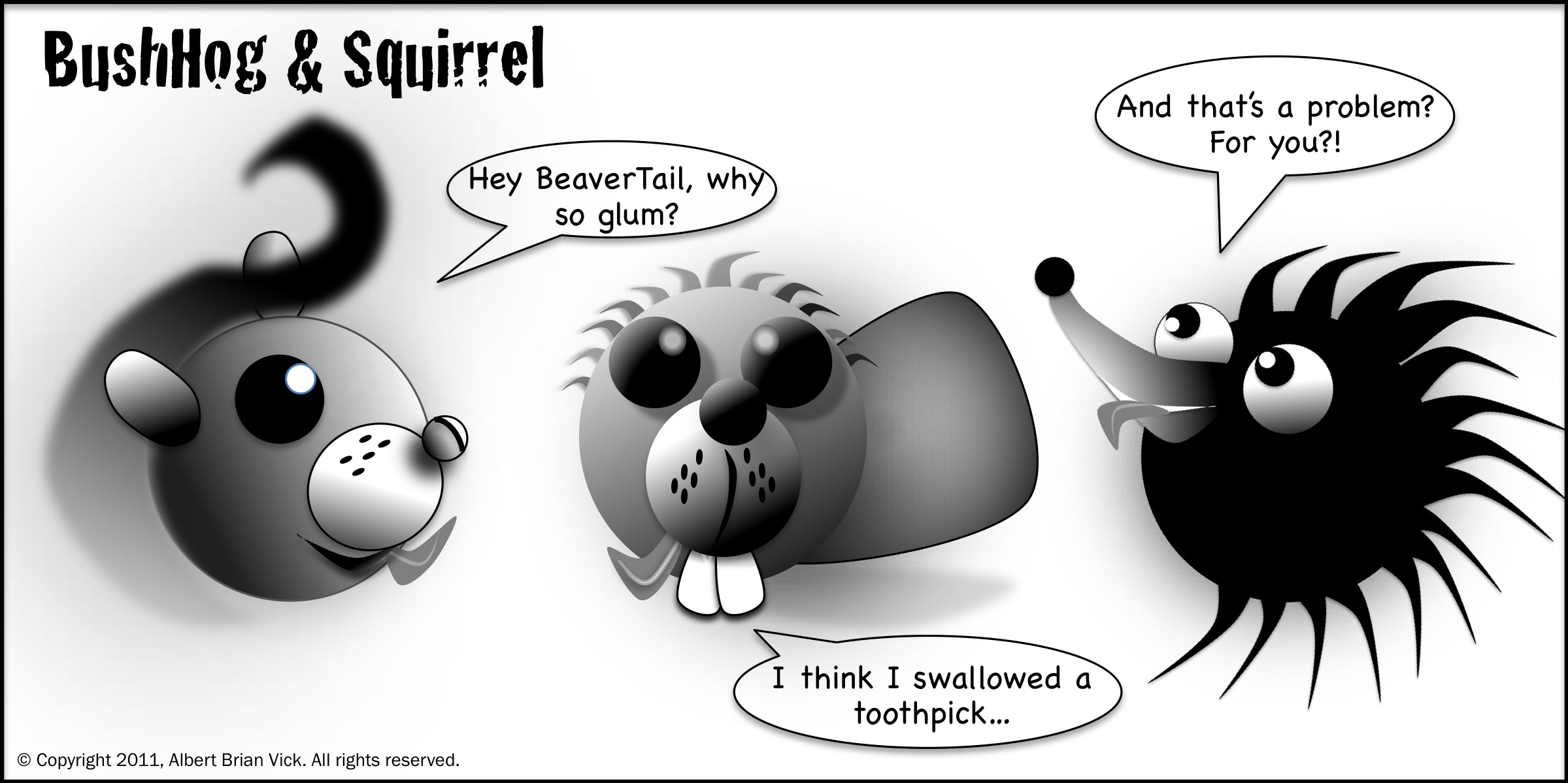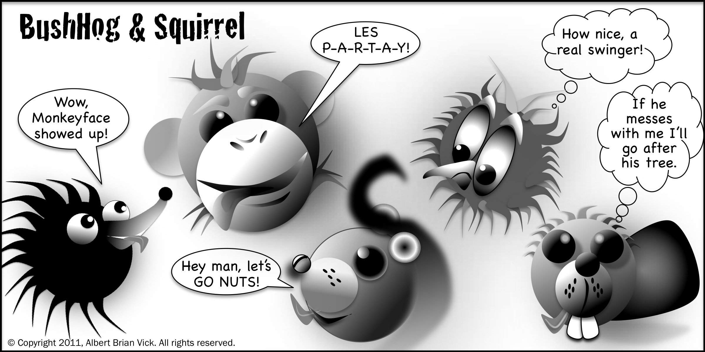 Graphic Fun BushHog & Squirrel are the lead characters among The Bold & The Bushy, supported by BeaverTail, Ahlivia and MonkeyFace. The characters will provide philosophical insight & wisdom addressing topical subjects, or maybe not. Share this: Click to email a link to a friend (Opens in new window) Email Click to share on Facebook (Opens in new window) Facebook Click to share on LinkedIn (Opens in new window) LinkedIn Like Loading...
